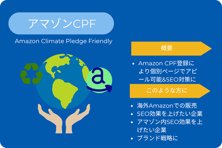 EU市場における消費者の購買行動は、価格や利便性に加え「環境への配慮」が重要な判断基準となりつつあります。こうした潮流に対応する制度として、Amazonが提供するClimate Pledge Friendly(CPF)プログラムは、環境認証を受けた商品に対して専用バッジを付与し、購入者に対してその価値を視覚的に訴求できる取り組みです。