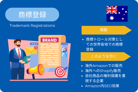 役務内容:オーストラリアトレードマーク取得のための役務提供(プランにより当社役務内容が決定)